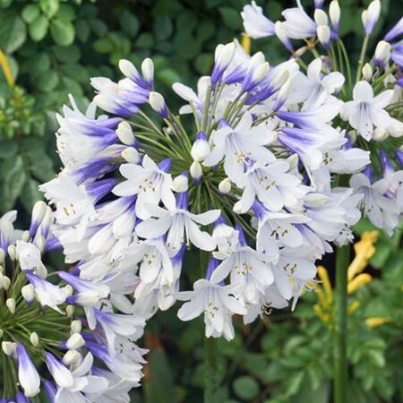 African Twister is a striking new member of the Agapanthus family, flaunting large, round clusters of bi-color blooms held up to 48" tall over strap-like green foliage. As if that weren't enough, the flowers change from blue at the throat to white on the petals' edges as if by magic!
