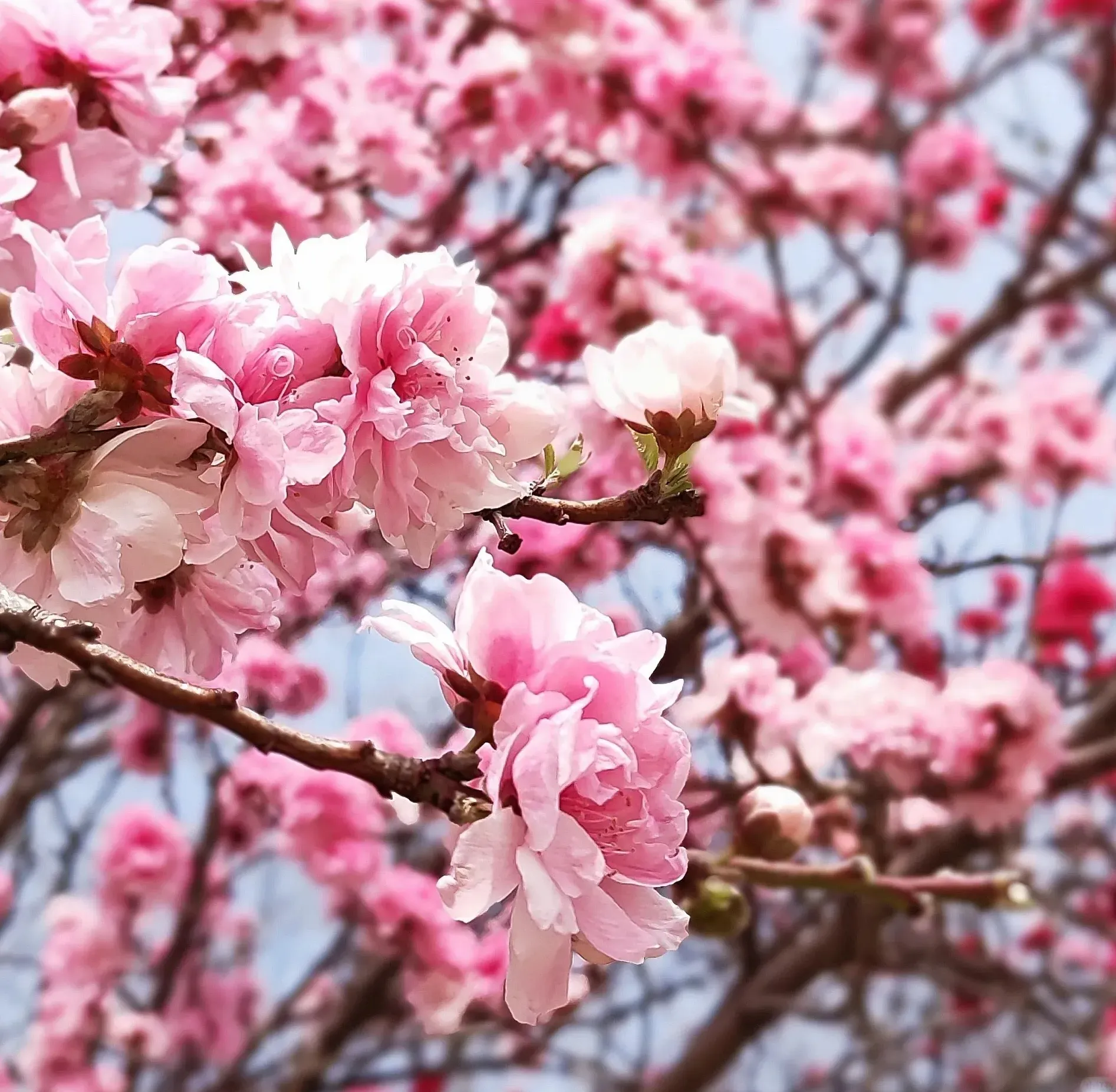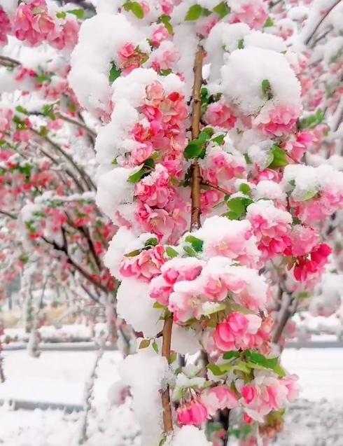 This flower is a tree-like mother-in-law, with pink flowers, slender pedicel, purple red, drooping in a ribbon shape, 4-7 flowers clustered into a cluster, shaped like a cherry blossom, with more than 5 petals, each flower is curved, swaying in the wind, bright in color The charm is beautiful, graceful and moving.